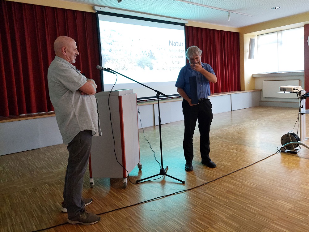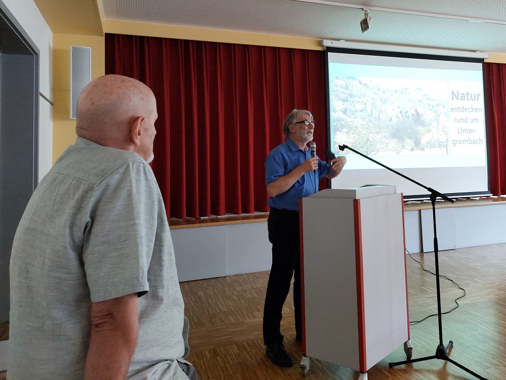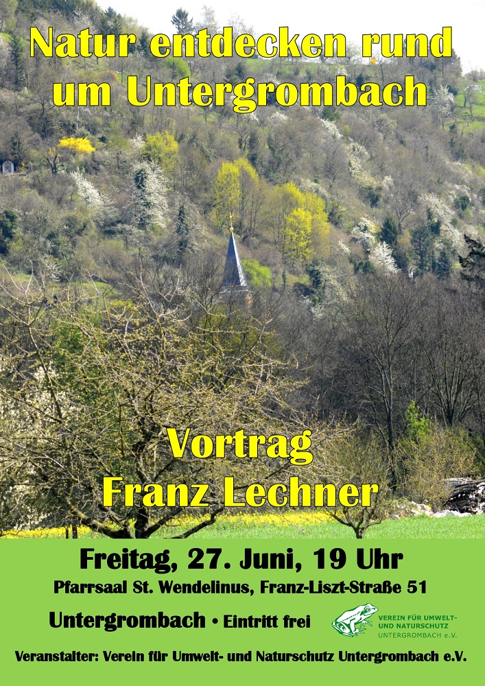 Der Diplom-Biologe und Naturfotograf Franz Lechner, hervorragender Kenner der Flora und Fauna zwischen Rheinebene und Kraichgau, der in den regionalen Medien regelmäßig über ökologische Themen im Landkreis Karlsruhe berichtet, war mit seinem Bildervortrag „Natur rund um Untergrombach“ am Freitag, 27. Juni, auf Einladung des Vereins für Umwelt- und Naturschutz zu Gast in Untergrombach. Dabei gab er, geordnet nach Artenspektren von Orchideen bis Säugetiere, Einblicke in die Vielfalt und Schönheit der heimischen Tier- und Pflanzenwelt – zeigte aber zugleich auch, dass die Verluste der ökologischen Vielfalt auch vor bisher artenreichen Landschaften nicht Halt machen. Viel Beifall und eine interessierte Fragerunde unter den Besucherinnen und Besucher stand am Ende dieses mit rund 50 Teilnehmenden sehr gut besuchten Vortrags.